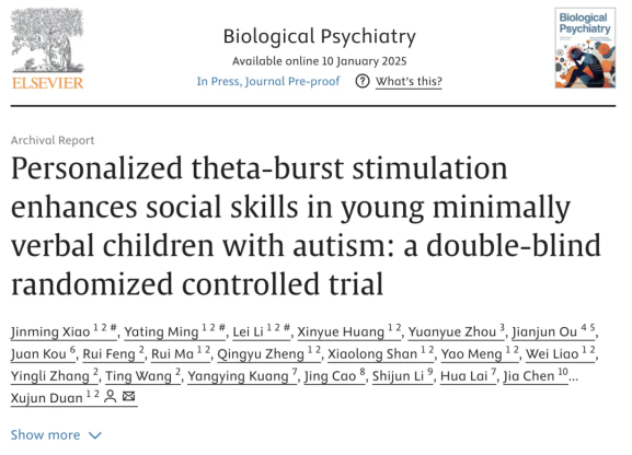 In January 2025, Professor Duan Xujun's team from the University of Electronic Science and Technology published a groundbreaking study in the internationally renowned journal Biological Psychiatry, titled "Personalized theta-burst stimulation enhances social skills in young minimally verbal children with autism: a double-blind randomized controlled trial". The study utilized personalized brain imaging analysis technology and implemented... Read more